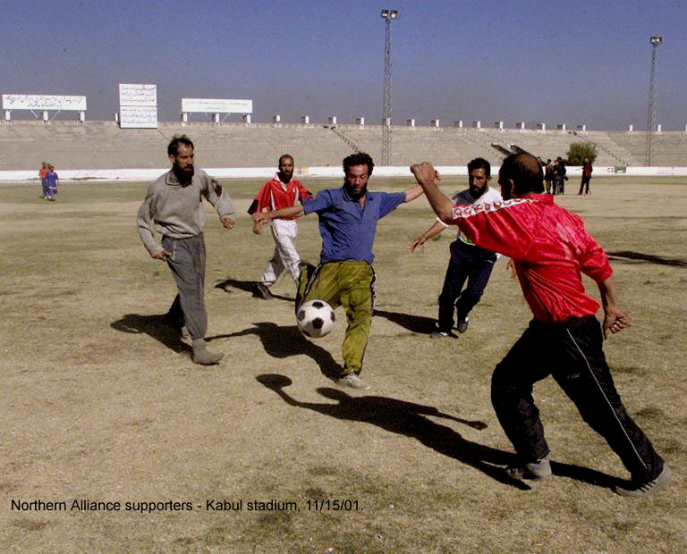 August 8, 2002 Peace through footie. The Guardian reports that Britain Prime Minister Tony Blair is actively encouraging the formation of an Afgani Football League. To that end equipment and team strip are headed to the warlords. President Bush is reported to be slightly puzzled by this. Perhaps an NFL exhibition game would be his preference?