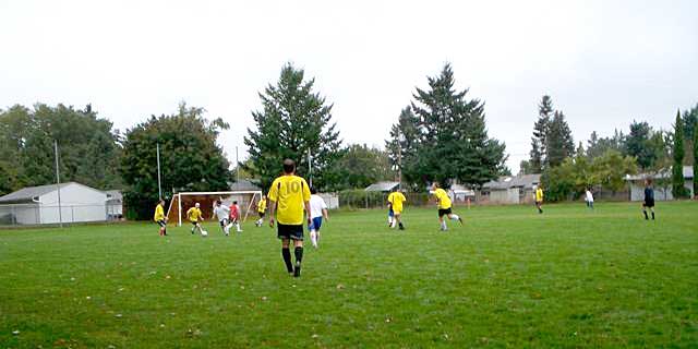 The second week of the Fall 2007 O-30, Third Division campaign found the Rangers taking the field against Viet Portland at the Montessori Earth School. A light drizzle and leaden skies kept the grounds cool and slick, in marked contrast to the previous week's soaring temperatures. Boasting a comfortable compliment of fifteen players--remember when we could barely field a full eleven? Ah, good times--the team lined up for the traditional team photo in fine spirits and was backed by a good crowd of about a dozen pro-FC77 supporters. Our previous match-up against Viet in the fall of 2006 resulted in a 2-5 loss and 'Gers anticipated an energetic, fluid opponent...but was oddly surprised with the slow start to the game. Not the on-field action, mind you. Despite having approximately 30 players, Viet took an excessively long time to put up the nets, get a game ball, change out of their all-too-similar yellow strip, etc. When referee Joe Pardo blew the whistle to start the game, ten minutes had already passed. With the kick-off came the quick, mobile play the Rangers had anticipated. Playing what appeared to be a 2-6-2, Viet marched the ball down the field and found the net within the first ten minutes. Discouraging, yes. Deflating? Not with this team, buddy. Discovering that Viet's Achilles heel was their reluctance to play defense, 'Gers got behind their back line and attacked hard from the right side. Aaron Radigan's aggro header took a deflection off the Viet goalkeeper (maybe a defender--I couldn't tell) and landed at Jim Snyder's feet, who finished the tough offensive series but putting it in the back of the net to equalize approximately five minutes after the first goal. With the tie, the two teams battled evenly for the rest of the shortened first half. Brian Bauman and Jay Abramowitz played enforcer and kept many Viet runs at bay with crunching tackles and forceful shoulder charges. Keeper Steve Berg was again everywhere between the posts, picking up at least a half dozen saves before half-time. The second half looked promising and around the 55th minute, Mark Vogel soft-shoed through the left side of the Viet defense, stayed on his feet despite several stabs in their box, and laid the ball off to James McConnachie, who obliged with a wicked kill shot into the net. For the first time in 145 minutes, Rangers had a lead. Pressing on for a third, striker Ron King was unfairly called for offsides a couple of times. Against the run of play, Viet Portland broke through the middle, caught Steve Berg one on one, and equalized around the 70th minute. Another goal followed on a similar breakaway ten minutes later. Tensions started to rise as both squads scrapped for possession in the closing minutes and the referee was forced to book one of the Viet players for dissent...with a green card. Maybe he meant to reach for a yellow card. Maybe there is some new football law I'm not familiar with...whatever. With the Rangers winning a corner kick in the 90th minute, manager Sean Ingersoll screamed for the entire team to push forward for a last ditch effort. Pushing ten men into a potential scoring position for the last kick, Viet deflected the ball out of bounds--didn't look like they were ten yards away from our sideline--and Pardo blew the match over. While not quite getting the win, Rangers certainly improved over last year's performance and, with a little bit of luck, might have salvaged a point. Ethan Snyder returned as Junior Ranger along with Kendall Ingersoll who, despite being on crutches, also served as match photographer. Next Match: FC77 Rangers vs. Blue Monk FC77 Rangers 0, Inka United 4 The FC77 Rangers kicked off their Fall 2007 campaign under glorious September skies on the new club pitch located at the Montessori Earth School in SE Portland. In front of a record crowd for the Over-30, Third Division squad --consisting of approximately two dozen club players, fans, family and some malted beverages-- 'Gers faced a tough new opponent, Inka United, who had been playing in the Hispanic Leagues for the past few years. Aye, carumba! The first fifteen minutes was a fairly open affair as both teams worked the The soccer gods appeared to smile on the home team as the Rangers quickly took