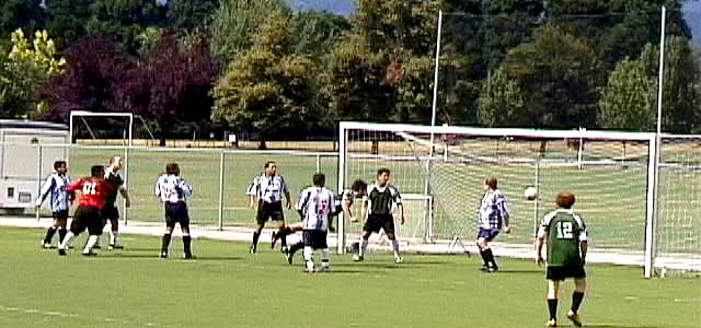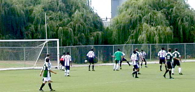 August 7th, 2004, FC77 Saxer [now FC77 Bollocks] played FC Alianza for the Championship of the 4th Division Open group. The two teams had finished as 1 and 2 in the standings for this Spring/Summer session. Match start was at 10 am, and the day was mild and sunny. Saxer scored their first goal early in the first half. A few minutes later, an Alianza defender made a reckless challenge on a Saxer attacker while in the Alianza penalty area. This resulted in the player receiving a red card and Saxer awarded a penalty kick - which they converted. While still in the first half, Saxer received another penalty kick. The score was now 3 - 0. Being a man down and behind 3 - 0, Alianza had to gamble on covering defensively as they pressed forward to score. This ultimately proved fatal to any chance for a comeback. In the second half, Saxer scored five more goals. The final score was FC77 Saxer 8, FC Alianza 0. |