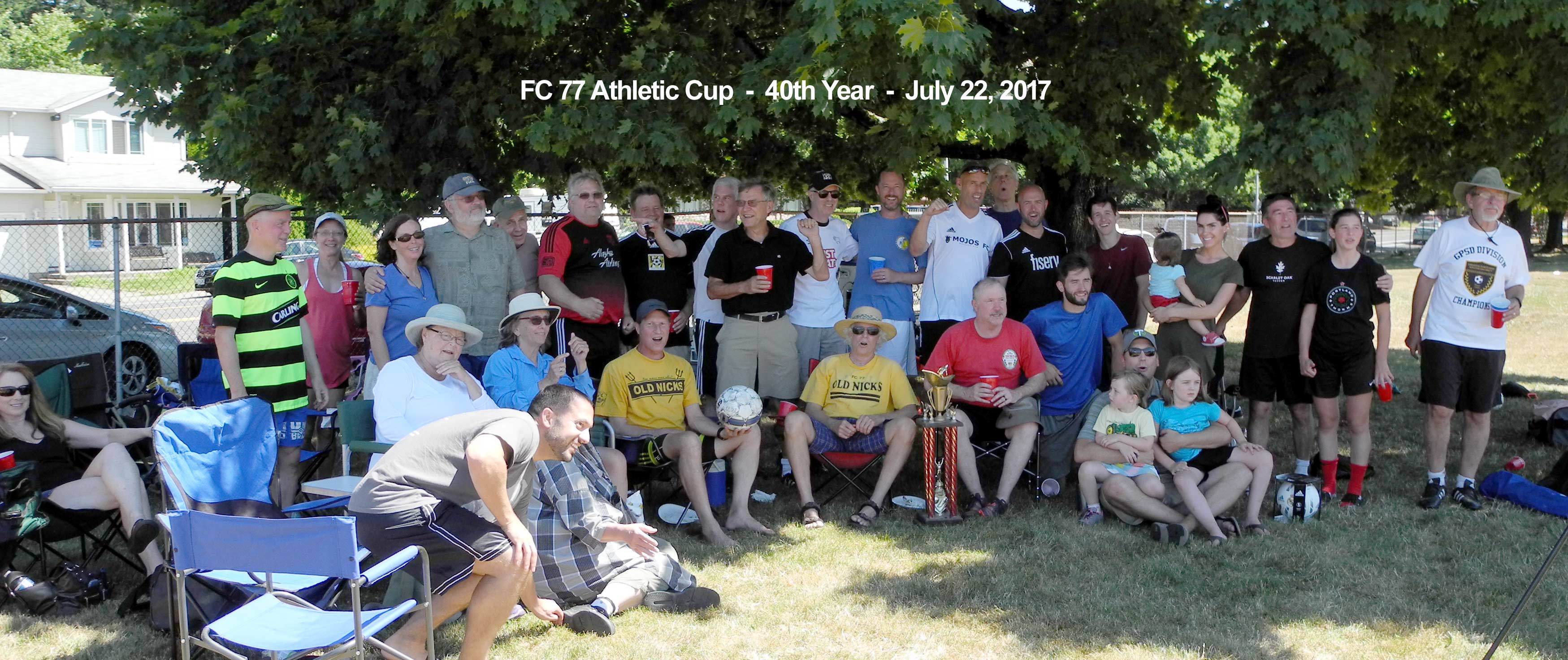 New club team FAS joins FC77 in time for Spring 2016 Season. Composed of many players from the former GE team, they join Old Nicks in the Over 58 bracket of GPSD. At the end of the Spring Season, FAS is dissolved and its players join other FC77 teams. In the Fall 2016 Season, Rangers play very well and make it into the Over 30, 3rd Division Championship Game against Buckman United on December 3rd. They lose, 2-1, thereby finishing in second place. Wow! It's our fortieth year! Six established teams make up the Club. A commemorative logo contest is held in spring 2017 to honor our longevity. The logo design by Mike Calder is selected by Club members. That summer's Athletic Cup club gathering celebrates the 40-year milestone. FC77 Ajax managed by Andy Groeneveld joins the Club family as an Over 50 team for Fall 2018 season. All seven teams of the Club participate in both GPSD's 2019 Spring and Fall Seasons. Rangers make it to the Spring Over 30, 3rd Division Championship Game and win their Division, 3-1. Arranged by Mike Calder, the Club sends a composite Over-60 FC77 team to La Paz, Mexico in early March to compete in the first annual senior tournament against local Asociación Sudcaliforniana de Futbol members. The COVID-19 virus causes the cancellation of the GPSD 2020 Spring and Fall Seasons for all FC77 teams. Over 40 team Ons Oranje joins the FC77 family as post-Covid-lockdown league play resumes for Spring Season 2021. Old Nicks undergoes mitosis and becomes the Over58 Old Nicks and the Over65 Older Nicks beginning spring 2021. Newcastle team takes a sabbatical for 2021. PBR, Ajax and Hibernian teams all place first in their divisions for the Spring 2021 Season! For Spring 2022 Season, FC77 fielded an all-time high 9 teams. New addition was FC77 United managed by Gene Nguyen. United plays in the Over-50 bracket. The fabled FC77 Athletic Cup made a successful return on September 3rd after a multi-year COVID-related hiatus. Vancouver Wa. was the site. All teams were represented. Wives, friends and offspring joined the players, with a barbeque feed capping off the event. Nine Club teams registered for Fall 2022 Season. GPSD Spring Season 2023 was graced with all nine Club teams. Rangers, Bollocks and United teams made the culminating June Championship Finals, with Rangers and United winning their Divisions! The 2023 FC77 Athletic Cup gathering on Aug.5th, draws more than 120 participants to Portland's Lents Park, a Club record for participation. ![]() |