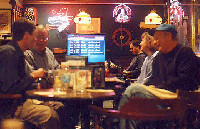 | Monday, the actual holiday itself, found us reassembling in our various clusters, at the Las Vegas airport. Despite a little anxiety about the wayward set of alternate jersies, our spirits were good, and the final toasts to the 2000 Tournament in Las Vegas were consumed at the ubiquitous Cheers outlet in the airport concourse. | ![]() |